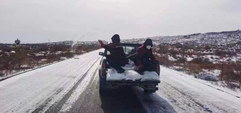 為了確保生產(chǎn)道路交通和群眾出行安全,防范大雪帶來(lái)的安全隱患,工業(yè)廢渣處理公司機(jī)械隊(duì)隊(duì)長(zhǎng)高喜紅響應(yīng)號(hào)召,攜馮江文同志投入兩臺(tái)大型裝載機(jī)對(duì)主要道路進(jìn)行全面清雪作業(yè),并組織竇海建、郝誠(chéng)、姬文偉三位同志開(kāi)展道路撒融雪劑作業(yè),為群眾出行和生產(chǎn)道路保駕護(hù)航。