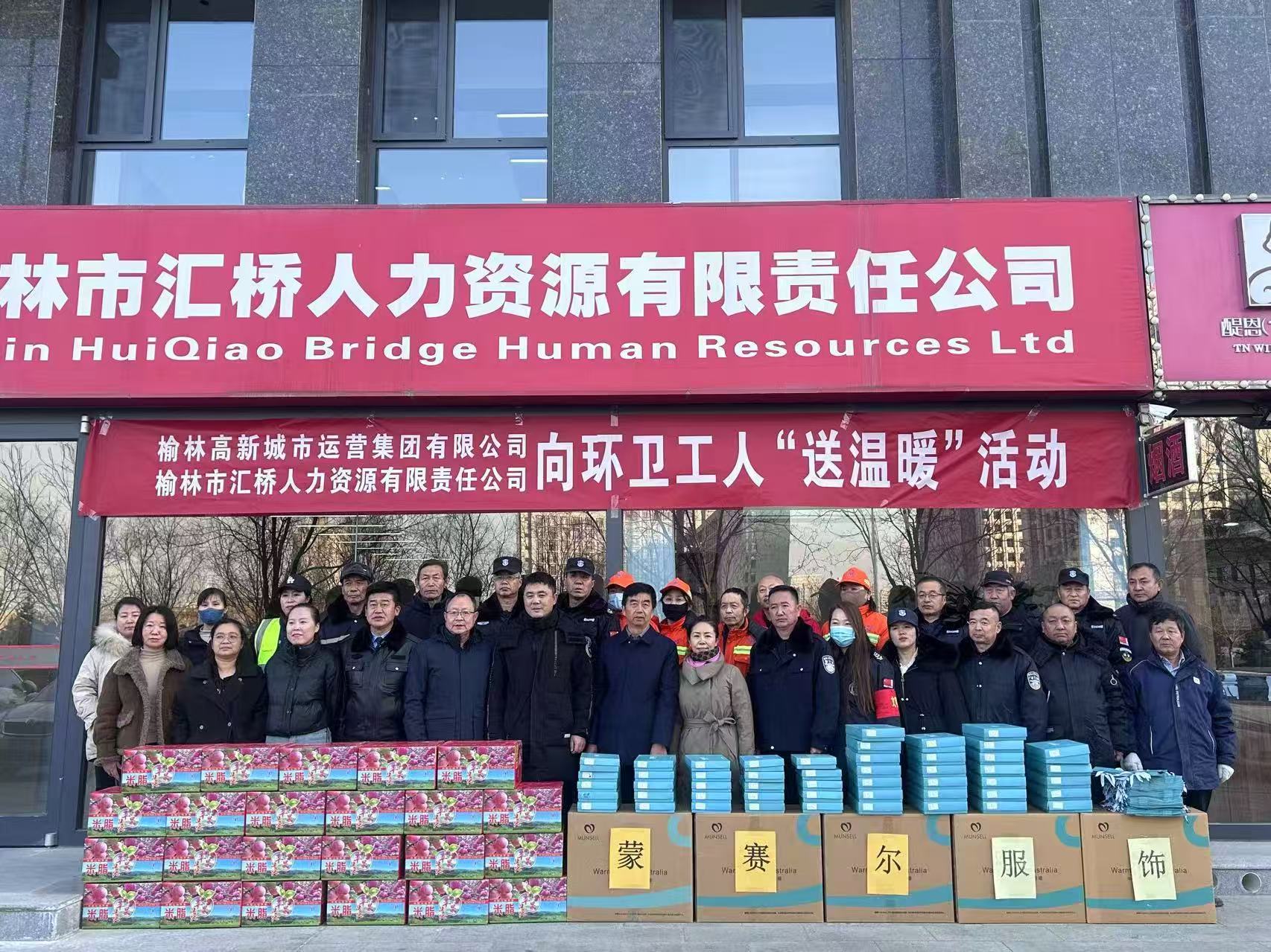 2024年12月24日下午,榆林市匯橋人力資源有限責(zé)任公司舉行向環(huán)衛(wèi)工人、保安“送溫暖”活動,為城市運(yùn)營集團(tuán)公司廣場公園92名一線環(huán)衛(wèi)工、保安贈送了蘋果、防寒服等慰問品。