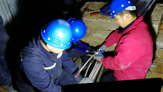 從2017年年底開始,污水處理廠辦公區(qū)電路出現(xiàn)間歇性的跳閘現(xiàn)象,電氣值班人員始終找不到具體原因,公司機(jī)電科檢維修人員對(duì)辦公區(qū)的跳閘原因進(jìn)行專項(xiàng)排查,通過詳細(xì)排查,認(rèn)真分析,最終確定故障原因?yàn)閺闹髯冸娬镜睫k公區(qū)并聯(lián)敷設(shè)的3根4*150+1*90的銅電纜其中的2根有接地現(xiàn)象,針對(duì)原因公司立即組織機(jī)電科員工對(duì)電纜進(jìn)行仔細(xì)排查,最終發(fā)現(xiàn)有一根電纜被擊穿,立即組織人員開始搶修工作,首先對(duì)餐廳用電使用發(fā)電機(jī)發(fā)電,確保所有職工按時(shí)用餐,直到下班之前搶修工作還在進(jìn)行中,只能要求所有電氣人員加班搶修,最終在大家的共同努力下電纜搶修工作順利完成。