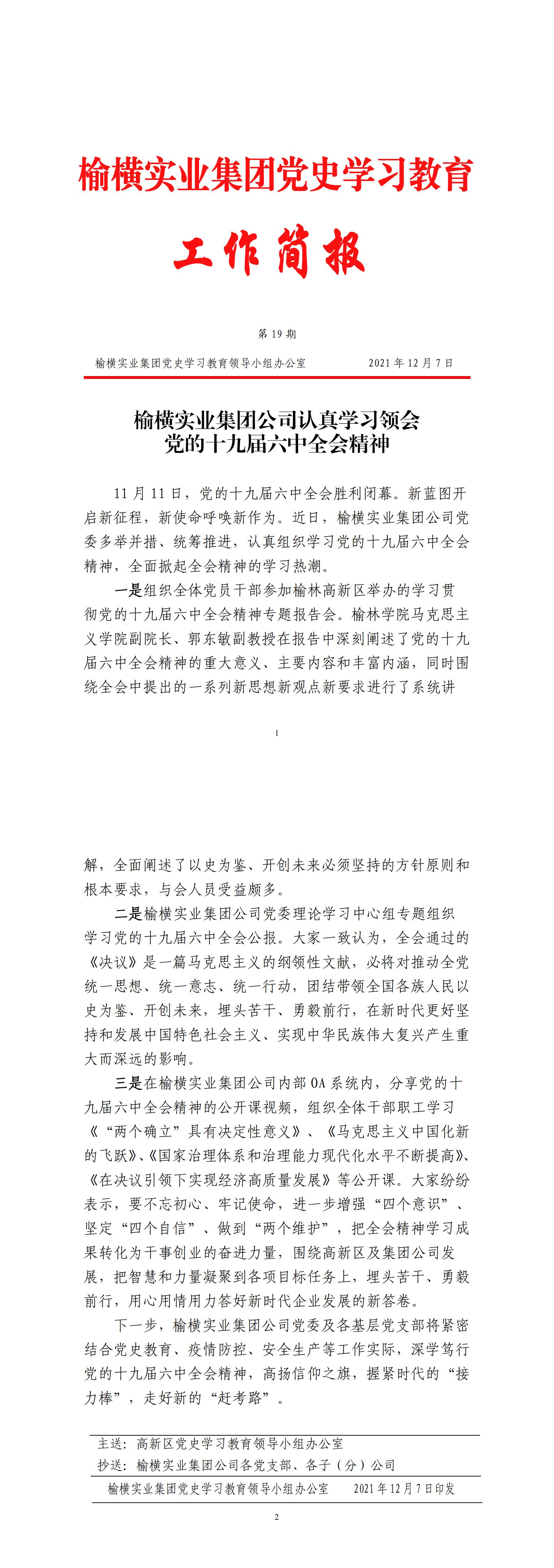 - 榆橫實業(yè)集團公司認真學習領(lǐng)會 黨的十九屆六中全會精神