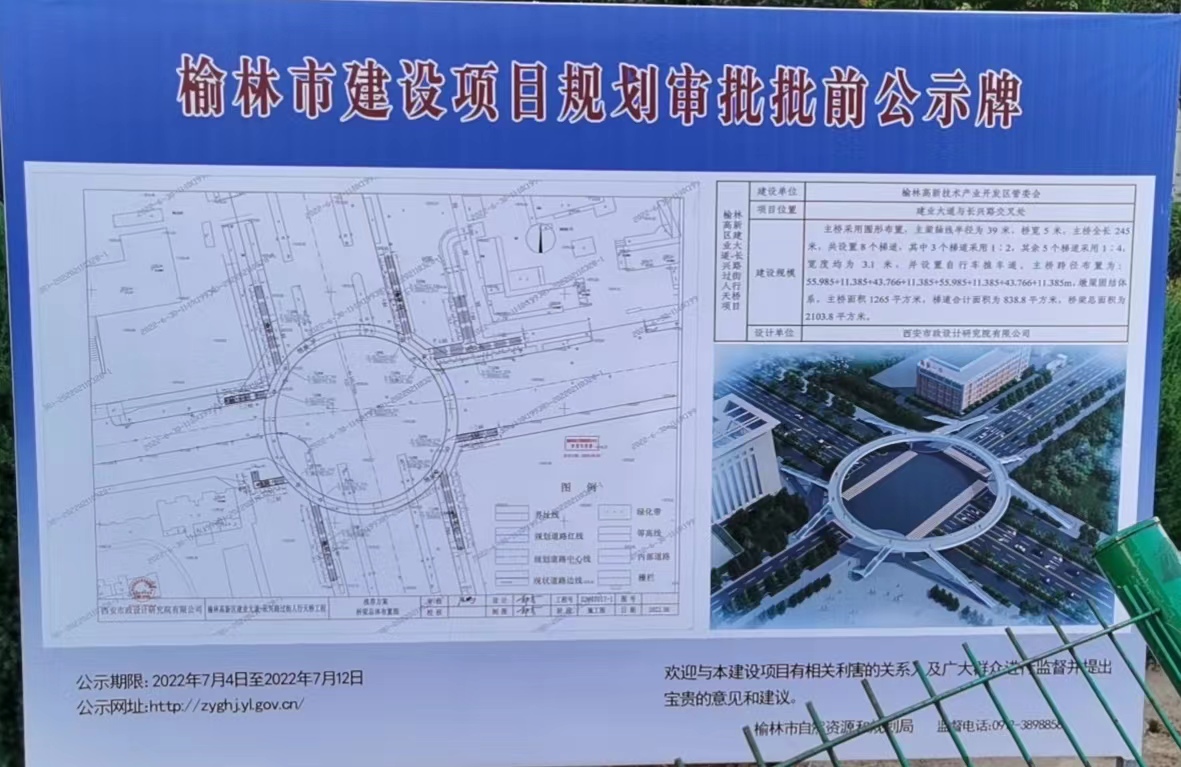 榆林高新區(qū)建業(yè)大道-長(zhǎng)興路過街人行天橋項(xiàng)目位于建業(yè)大道-長(zhǎng)興路平交口。項(xiàng)目東北角為榆林高新一中,周邊有萬達(dá)廣場(chǎng)、博物館、展覽館等人流密集場(chǎng)所,周邊其他企事業(yè)單位和住宅小區(qū)也很密集。該路口行人橫穿馬路,人車混流,嚴(yán)重影響道路的通行能力和行人的安全。2020年榆林高新區(qū)管委會(huì)計(jì)劃啟動(dòng)該項(xiàng)目,具體由榆林高新控股集團(tuán)有限公司負(fù)責(zé)實(shí)施。