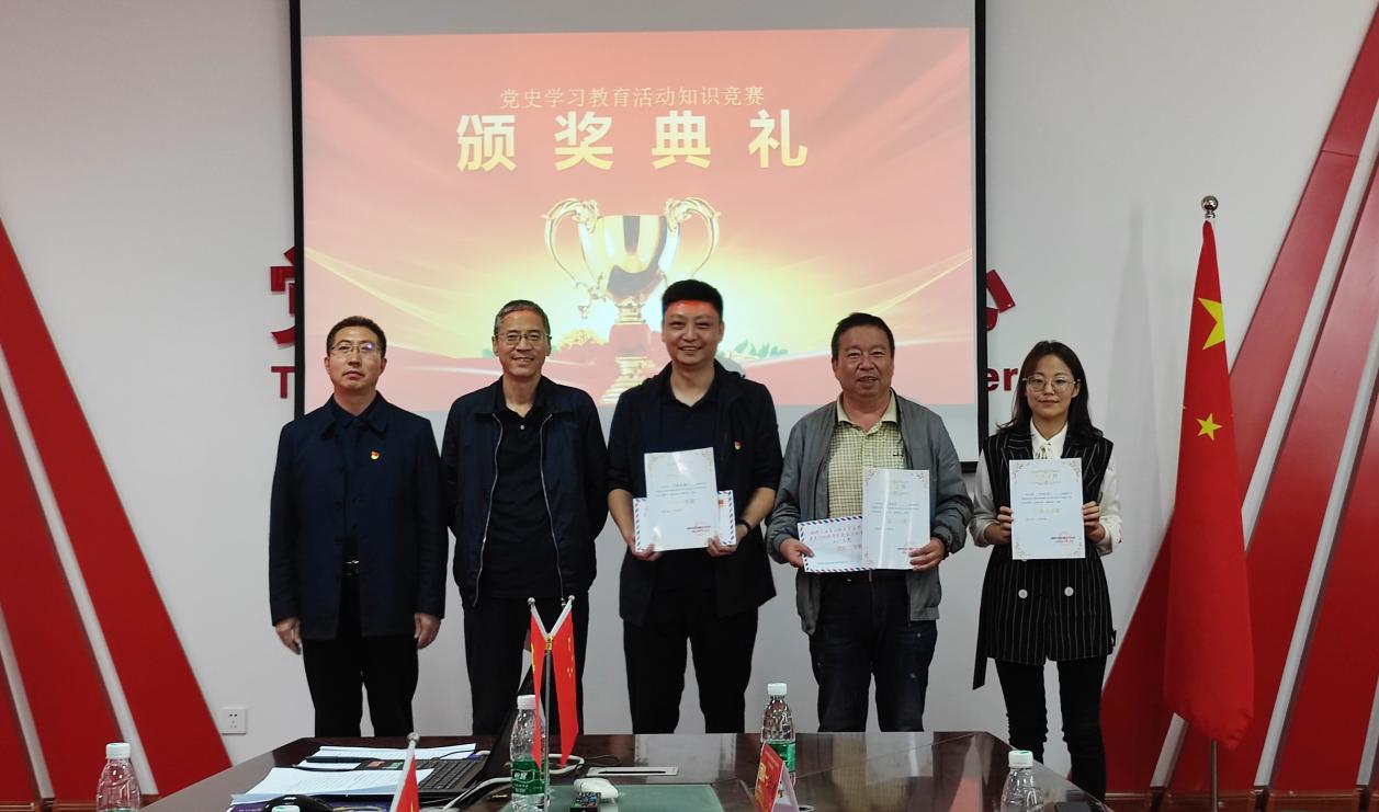 本次知識競賽內(nèi)容涵蓋黨史、新中國史、改革開放史、社會主義發(fā)展史等方面內(nèi)容,分為必答題、搶答題、風險題和附加題四個環(huán)節(jié)。在現(xiàn)場主持人、支部組織委員封春雨的引導(dǎo)下,知識競賽有序進行,各參賽隊員精神飽滿、沉穩(wěn)機智,以較為豐富的知識儲備和精彩的作答贏得了現(xiàn)場陣陣掌聲,充分展示了其黨史理論知識學(xué)習(xí)成果和奮勇爭先、團結(jié)一心、積極向上的精神風貌。最終經(jīng)過激烈角逐,隨機抽取、現(xiàn)場組合、當場取名的王者榮耀隊、海軍隊、不忘初心隊分別獲得團隊第一名、第二名和第三名,曹超、方忠艷、徐文霞榮獲個人風采獎。
